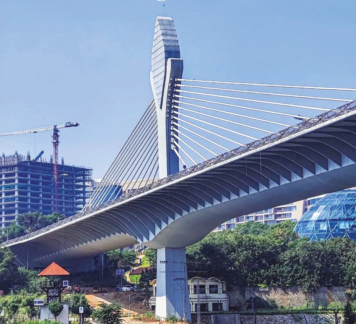 The Durgam Cheruvu Cable Bridge is a cable-stayed bridge in Hyderabad, India that connects Jubilee Hills and the Financial District